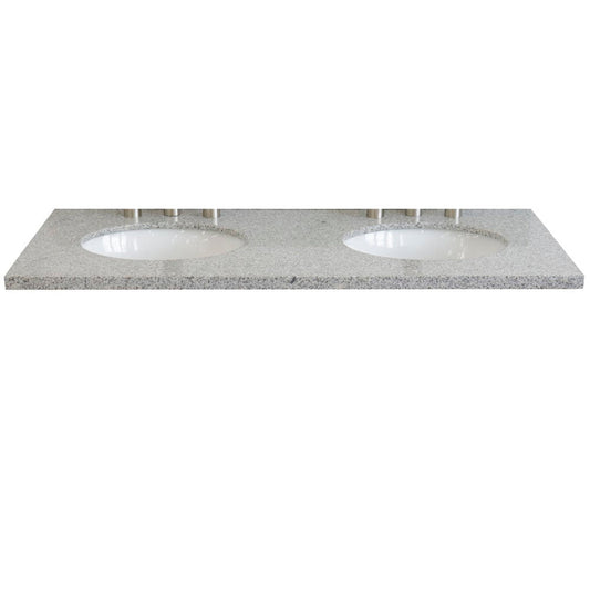 Bellaterra Home 49" x 22" Gray Granite Three Hole Vanity Top With Double Undermount Oval Sink and Overflow