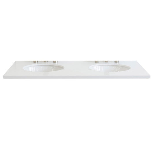 Bellaterra Home 49" x 22" White Quartz Three Hole Vanity Top With Double Undermount Oval Sink and Overflow