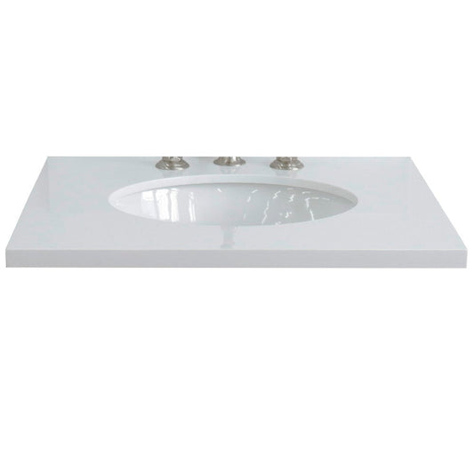 Bellaterra Home 31" x 22" White Quartz Three Hole Vanity Top With Undermount Oval Sink and Overflow