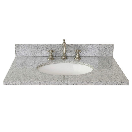 Bellaterra Home 31" x 22" Gray Granite Three Hole Vanity Top With Undermount Oval Sink and Overflow