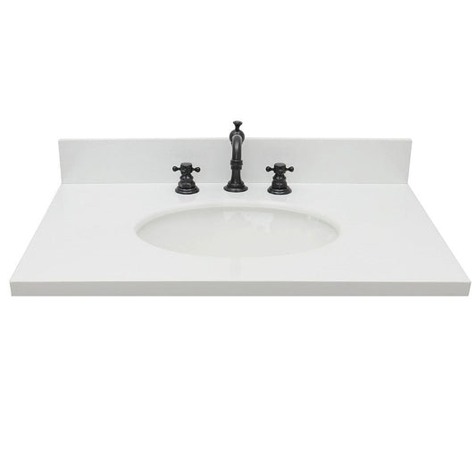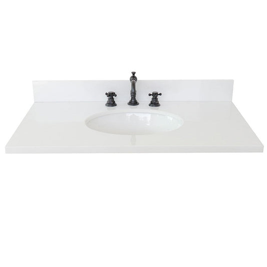 Bellaterra Home 37" x 22" White Quartz Three Hole Vanity Top With Undermount Oval Sink and Overflow