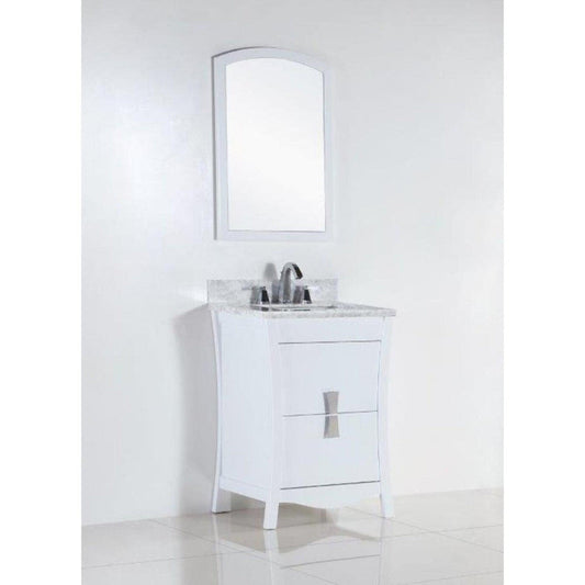 Bellaterra Home 500709 24" 2-Drawer White Freestanding Vanity Set With Ceramic Undermount Rectangular Sink and White Carrara Marble Top