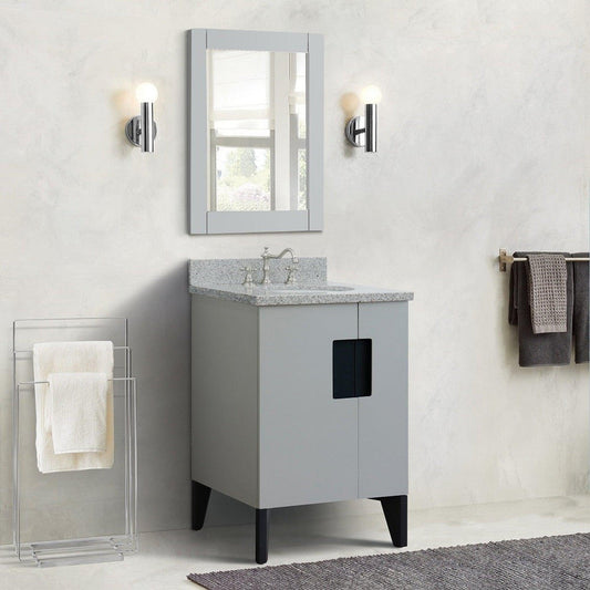 Bellaterra Home Kolb 25" 2-Door 1-Drawer Light Gray Freestanding Vanity Set With Ceramic Undermount Oval Sink and Gray Granite Top