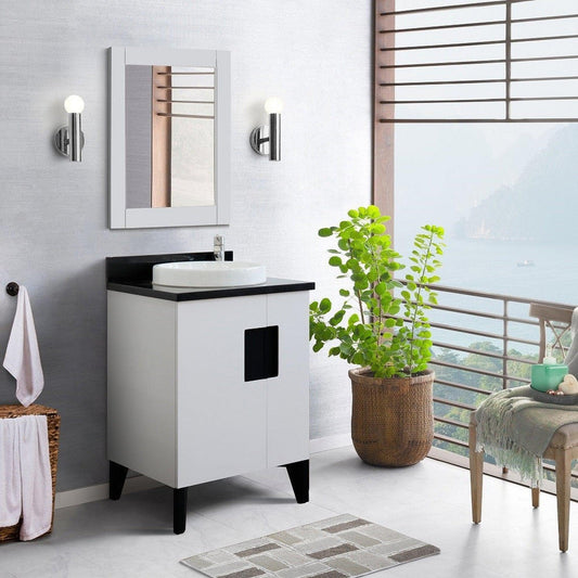 Bellaterra Home Kolb 25" 2-Door 1-Drawer White Freestanding Vanity Set With Ceramic Vessel Sink and Black Galaxy Granite Top
