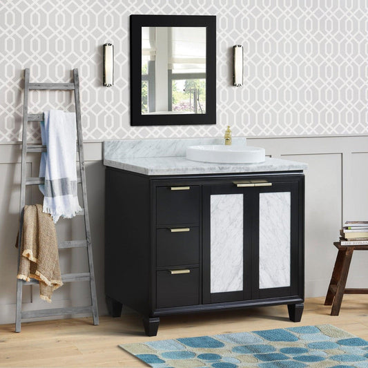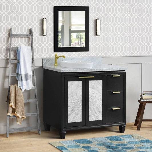 Bellaterra Home Trento 43" 2-Door 3-Drawer Black Freestanding Vanity Set With Ceramic Right Vessel Sink and White Carrara Marble Top, and Right Door Cabinet