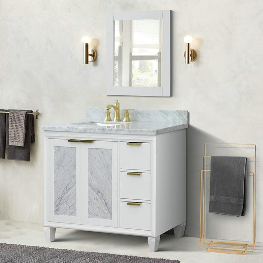 Bellaterra Home Trento 43" 2-Door 3-Drawer White Freestanding Vanity Set With Ceramic Left Undermount Rectangular Sink and White Carrara Marble Top, and Left Door Cabinet