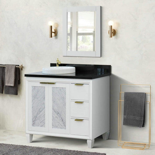 Bellaterra Home Trento 43" 2-Door 3-Drawer White Freestanding Vanity Set With Ceramic Left Vessel Sink and Black Galaxy Granite Top, and Left Door Cabinet