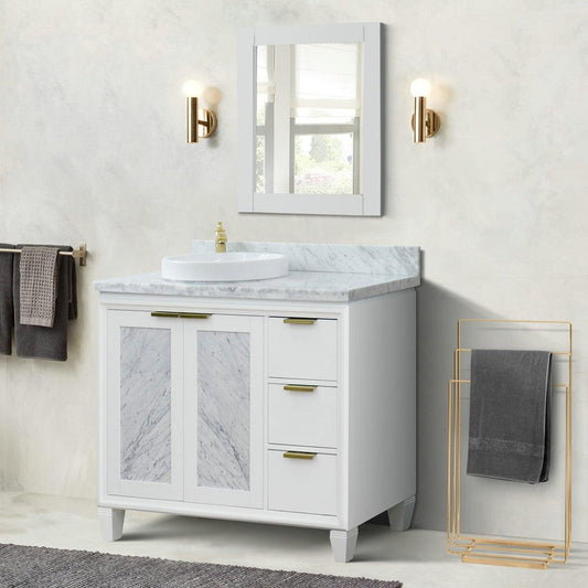 Bellaterra Home Trento 43" 2-Door 3-Drawer White Freestanding Vanity Set With Ceramic Left Vessel Sink and White Carrara Marble Top, and Left Door Cabinet