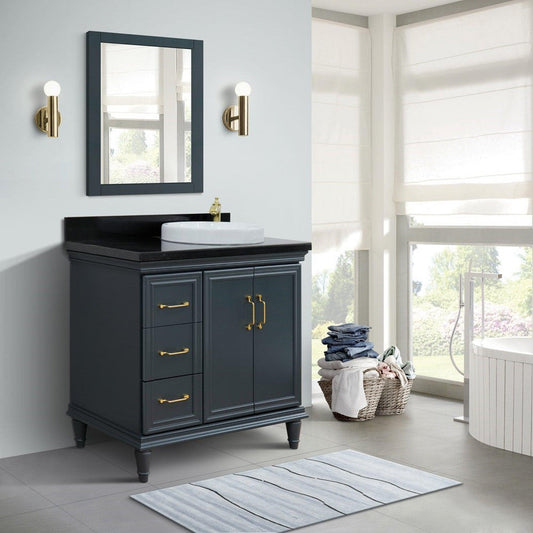 Bellaterra Home Forli 37" 2-Door 3-Drawer Dark Gray Freestanding Vanity Set With Ceramic Right Offset Vessel Sink and Black Galaxy Granite Top, and Right Door Cabinet