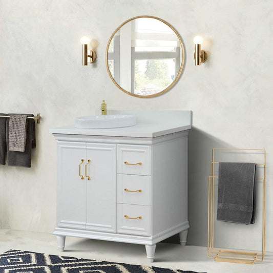 Bellaterra Home Forli 37" 2-Door 3-Drawer White Freestanding Vanity Set With Ceramic Left Offset Undermount Oval Sink and White Quartz Top, and Left Door Cabinet