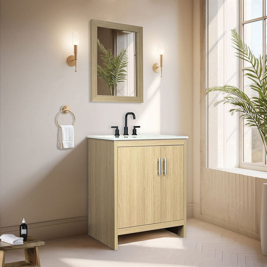 Bellaterra Home 804353V-CO 32" Neutral Finish Single Sink Vanity With White Composite Granite Top