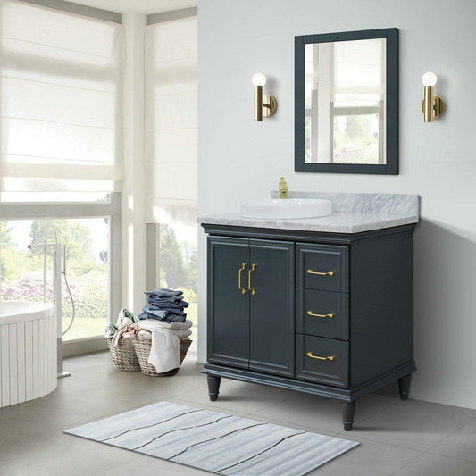 Bellaterra Home Forli 37" 2-Door 3-Drawer Dark Gray Freestanding Vanity Set With Ceramic Left Offset Vessel Sink and White Carrara Marble Top, and Left Door Cabinet
