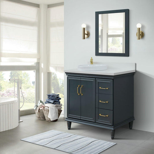 Bellaterra Home Forli 37" 2-Door 3-Drawer Dark Gray Freestanding Vanity Set With Ceramic Left Offset Vessel Sink and White Quartz Top, and Left Door Cabinet