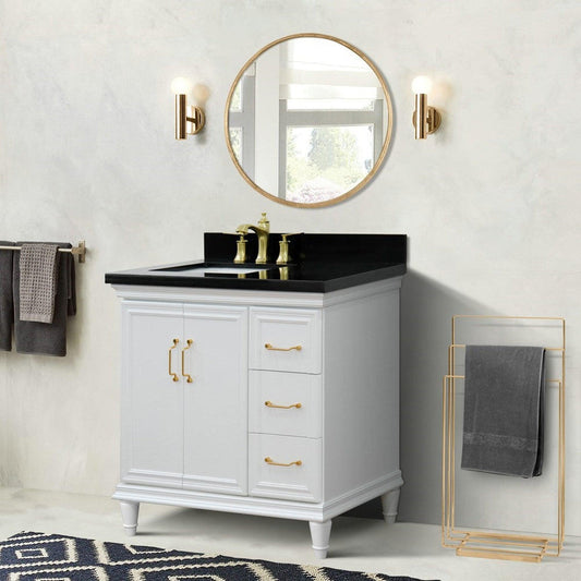 Bellaterra Home Forli 37" 2-Door 3-Drawer White Freestanding Vanity Set With Ceramic Left Offset Undermount Rectangular Sink and Black Galaxy Granite Top, and Left Door Cabinet