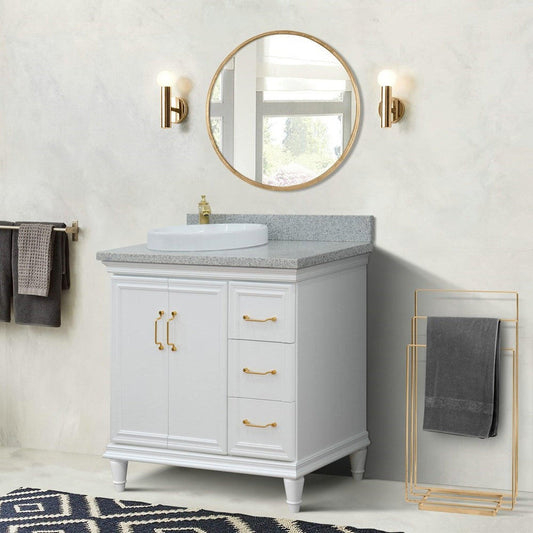 Bellaterra Home Forli 37" 2-Door 3-Drawer White Freestanding Vanity Set With Ceramic Left Offset Vessel Sink and Gray Granite Top, and Left Door Cabinet