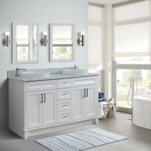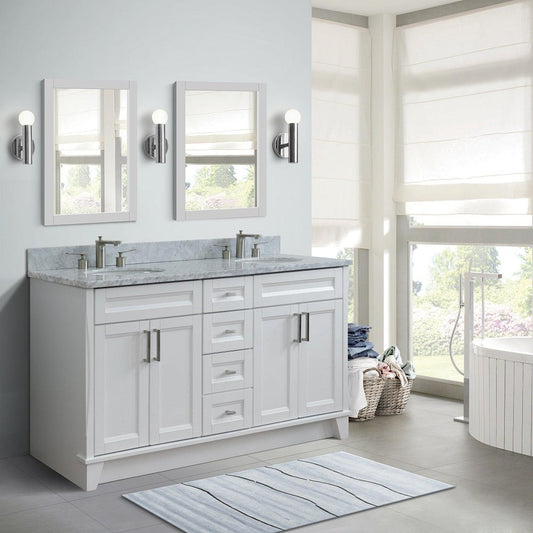Bellaterra Home Terni 61" 4-Door 3-Drawer White Freestanding Vanity Set With Ceramic Double Undermount Oval Sink And White Carrara Marble Top