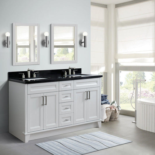 Bellaterra Home Terni 61" 4-Door 3-Drawer White Freestanding Vanity Set With Ceramic Double Undermount Rectangular Sink And Black Galaxy Granite Top