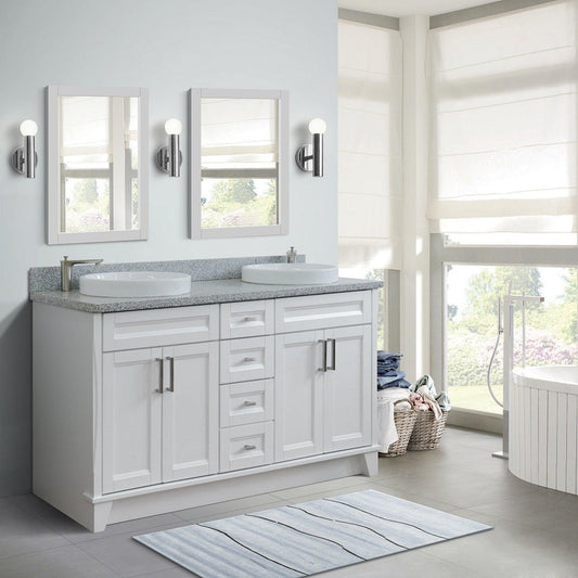 Bellaterra Home Terni 61" 4-Door 3-Drawer White Freestanding Vanity Set With Ceramic Double Vessel Sink And Gray Granite Top