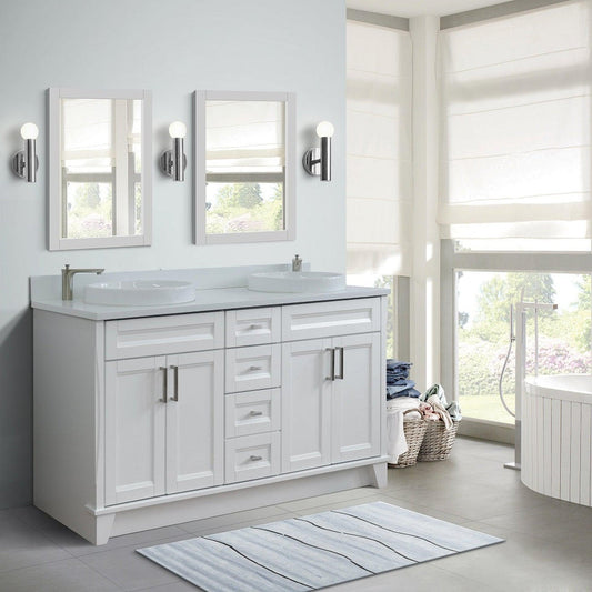 Bellaterra Home Terni 61" 4-Door 3-Drawer White Freestanding Vanity Set With Ceramic Double Undermount Oval Sink And White Quartz Top