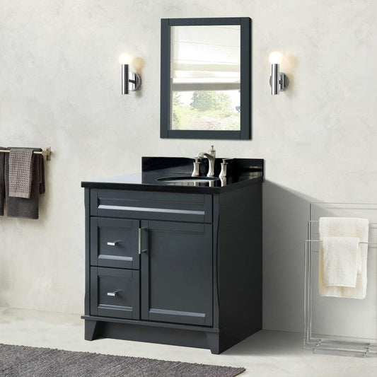 Bellaterra Home Terni 37" 1-Door 2-Drawer Dark Gray Freestanding Vanity Set With Ceramic Right Offset Undermount Oval Sink and Black Galaxy Granite Top, and Right Door Base