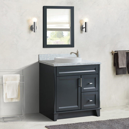 Bellaterra Home Terni 37" 1-Door 2-Drawer Dark Gray Freestanding Vanity Set With Ceramic Center Vessel Sink and White Carrara Marble Top, and Left Door Base