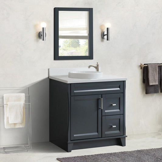 Bellaterra Home Terni 37" 1-Door 2-Drawer Dark Gray Freestanding Vanity Set With Ceramic Center Vessel Sink and White Quartz Top, and Left Door Base