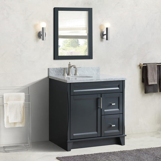 Bellaterra Home Terni 37" 1-Door 2-Drawer Dark Gray Freestanding Vanity Set With Ceramic Left Offset Undermount Oval Sink and White Carrara Marble Top, and Left Door Base