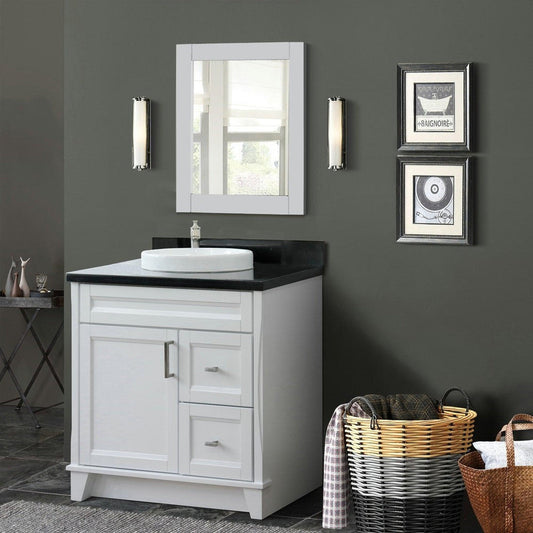 Bellaterra Home Terni 37" 1-Door 2-Drawer White Freestanding Vanity Set With Ceramic Center Vessel Sink and Black Galaxy Granite Top, and Left Door Base