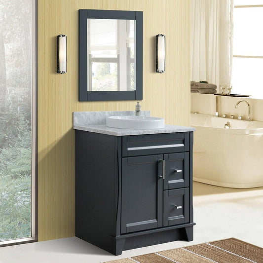 Bellaterra Home Terni 31" 1-Door 2-Drawer Dark Gray Freestanding Vanity Set With Ceramic Vessel Sink and White Carrara Marble Top