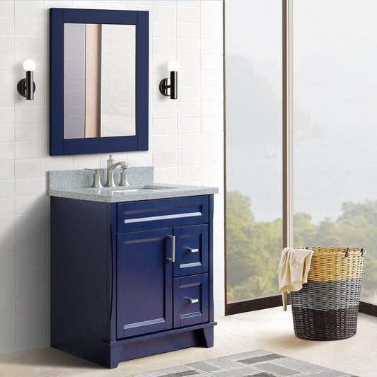 Bellaterra Home Terni 31" 1-Door 2-Drawer Blue Freestanding Vanity Set With Ceramic Undermount Oval Sink and Gray Granite Top