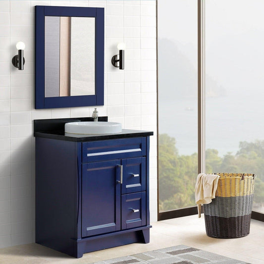 Bellaterra Home Terni 31" 1-Door 2-Drawer Blue Freestanding Vanity Set With Ceramic Vessel Sink and Black Galaxy Granite Top