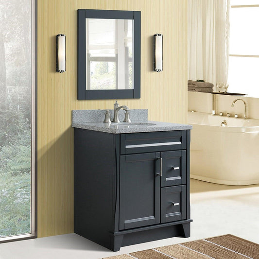 Bellaterra Home Terni 31" 1-Door 2-Drawer Dark Gray Freestanding Vanity Set With Ceramic Undermount Oval Sink and Gray Granite Top