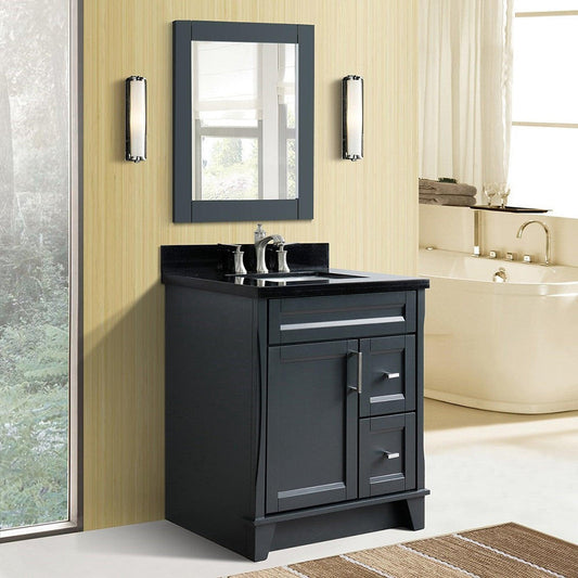Bellaterra Home Terni 31" 1-Door 2-Drawer Dark Gray Freestanding Vanity Set With Ceramic Undermount Rectangular Sink and Black Galaxy Granite Top