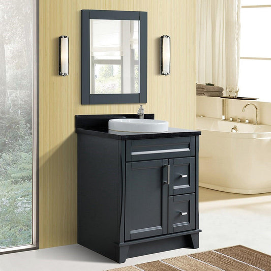 Bellaterra Home Terni 31" 1-Door 2-Drawer Dark Gray Freestanding Vanity Set With Ceramic Vessel Sink and Black Galaxy Granite Top