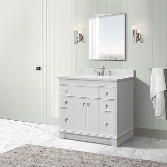Bellaterra Home 3922-BL-WH-AQ 39" White Single Sink Vanity With Engineered Stone Top and Black Hardware