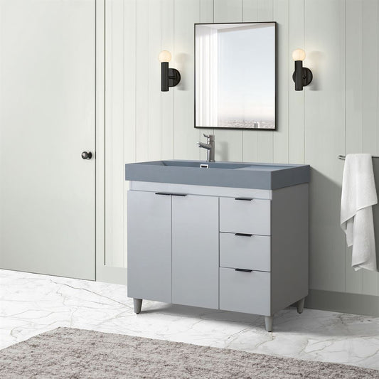 Bellaterra Home G3918-FG-SG 39" French Gray Single Sink Vanity With Dark Gray Composite Granite Sink Top