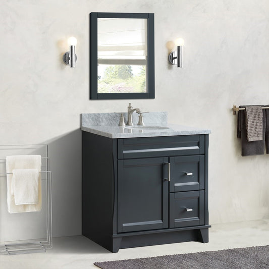 Bellaterra Home 400700-37L-DG-WMOC 37" Dark Gray Single Sink Vanity With 2 Drawers, 1 Left Door, White Carrara Marble Countertop, and Integrated Center Sink