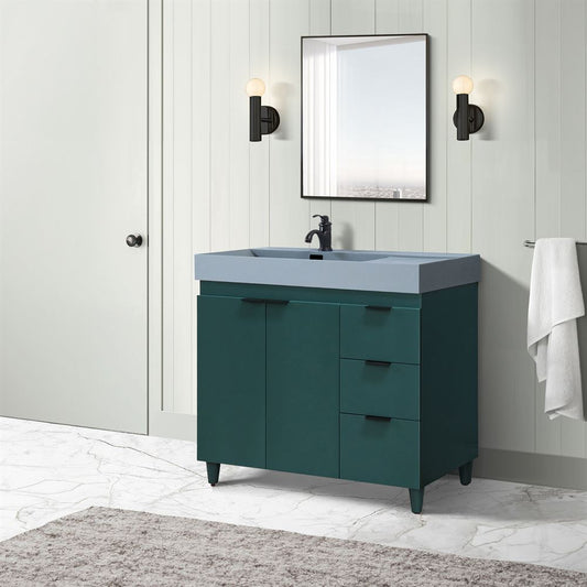 Bellaterra Home G3918-HG-SG 39" Hunter Green Single Sink Vanity With Dark Gray Composite Granite Top
