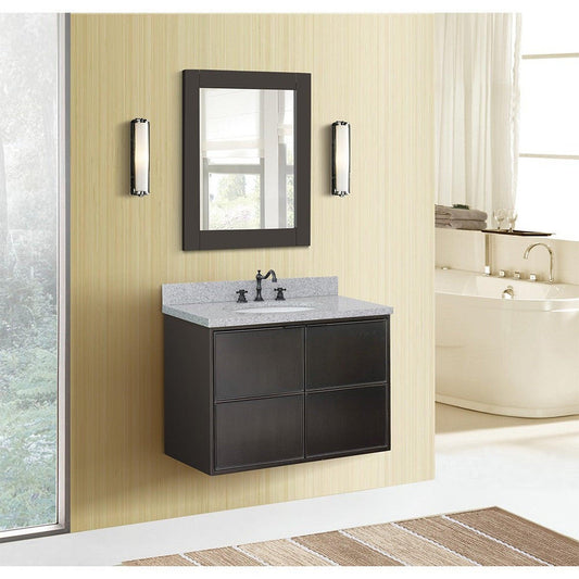 Bellaterra Home Cafe 37" 2-Door 1-Drawer Cappuccino Wall-Mount Vanity Set With Ceramic Undermount Oval Sink and Gray Granite Top