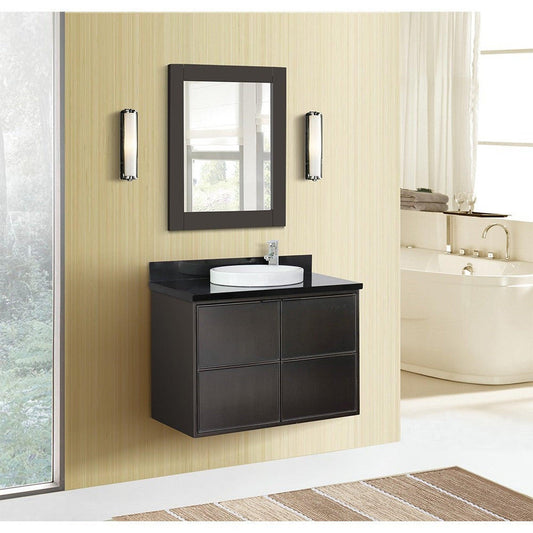 Bellaterra Home Cafe 37" 2-Door 1-Drawer Cappuccino Wall-Mount Vanity Set With Ceramic Vessel Sink and Black Galaxy Top