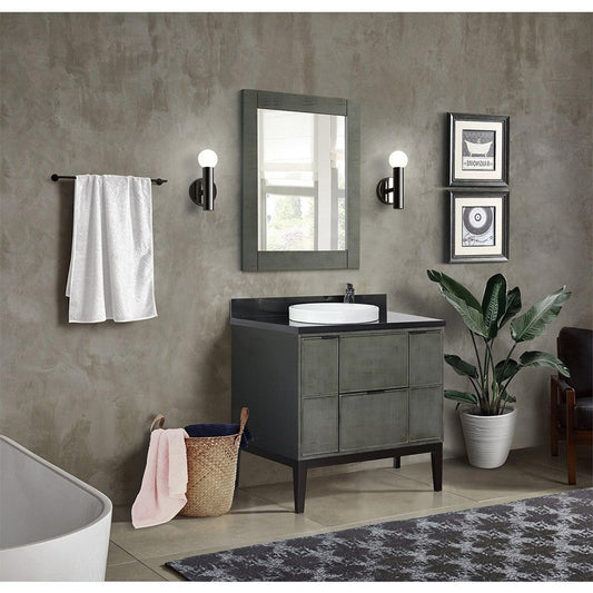 Bellaterra Home Paris 37" 2-Door 1-Drawer Linen Gray Freestanding Vanity Set With Ceramic Vessel Sink and Black Galaxy Top