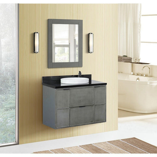 Bellaterra Home Paris 37" 2-Door 1-Drawer Linen Gray Wall-Mount Vanity Set With Ceramic Vessel Sink and Black Galaxy Top