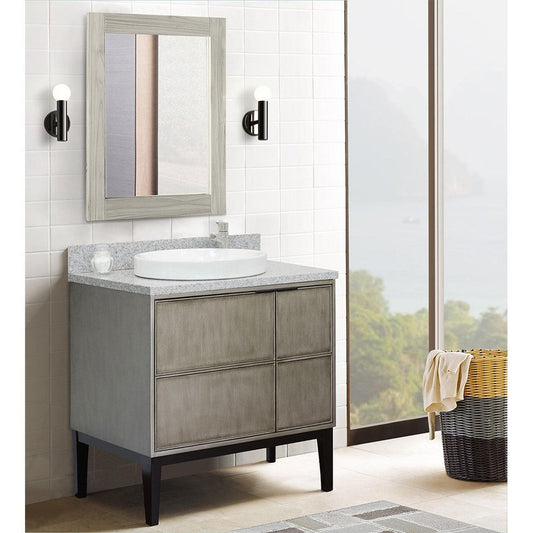Bellaterra Home Paris 37" 2-Door 1-Drawer Linen Gray Wall-Mount Vanity Set With Ceramic Vessel Sink and Gray Granite Top