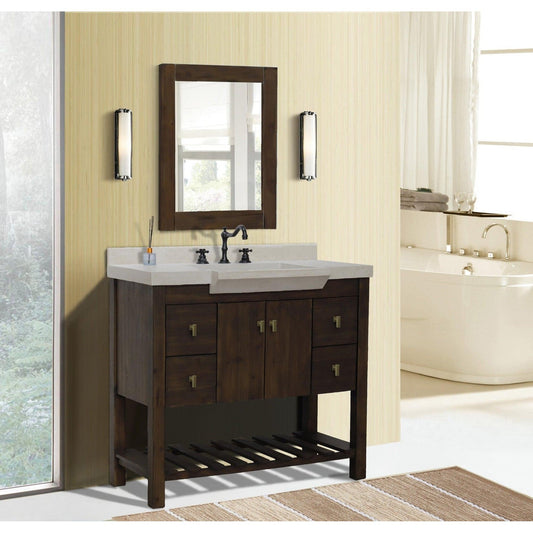 Bellaterra Home 39" 2-Door 4-Drawer Rustic Wood Freestanding Vanity Set With Concrete Integrated Rectangular Sink and Gray Concrete Top, and Gold Hardware
