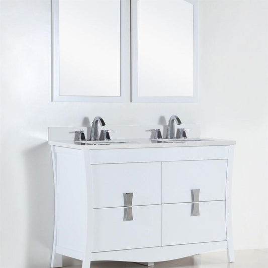 Bellaterra Home 500709-48D-WER 48" 4-Drawer White Freestanding Vanity Set With Ceramic Double Undermount Rectangular Sink and Quartz Top