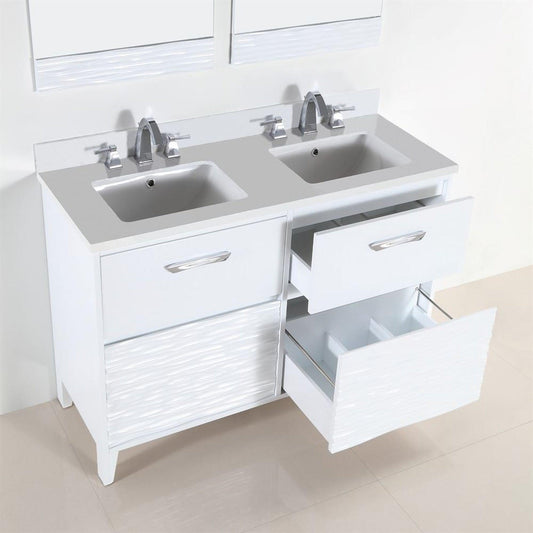 Bellaterra Home 500701-48D-WER 48" 4-Drawer White Freestanding Vanity Set With Ceramic Double Undermount Rectangular Sink and Quartz Top
