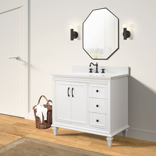 Bellaterra Home A3722-WH-AQ 37" White Transitional Single Sink Vanity With Engineered Stone Top