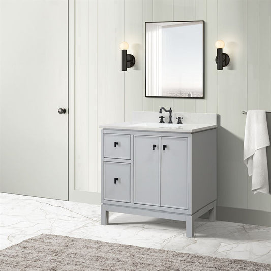 Bellaterra Home G3722-BL-FG-AQ 37" French Gray Single Sink Vanity With Engineered Stone Top and Black Hardware