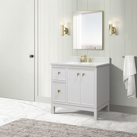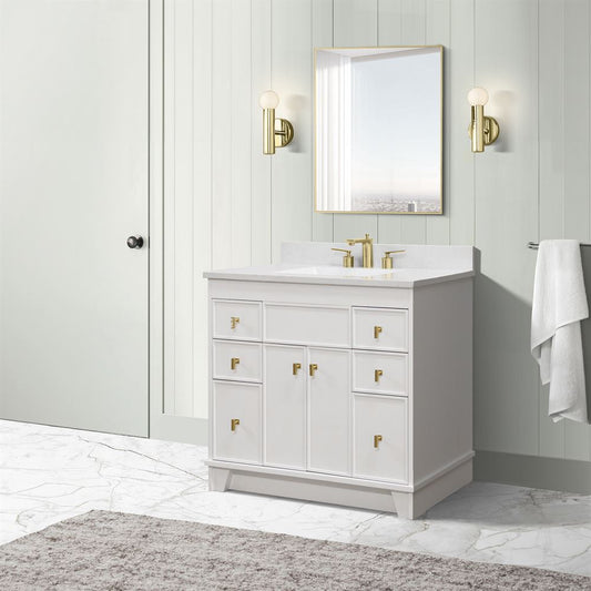 Bellaterra Home G3722-GD-WH-AQ 37" White Single Sink Vanity With Engineered Stone Top and Gold Hardware