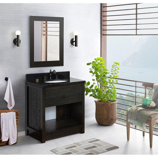 Bellaterra Home Plantation 31" 1-Drawer Brown Ash Freestanding Vanity Set With Ceramic Undermount Oval Sink and Black Galaxy Top